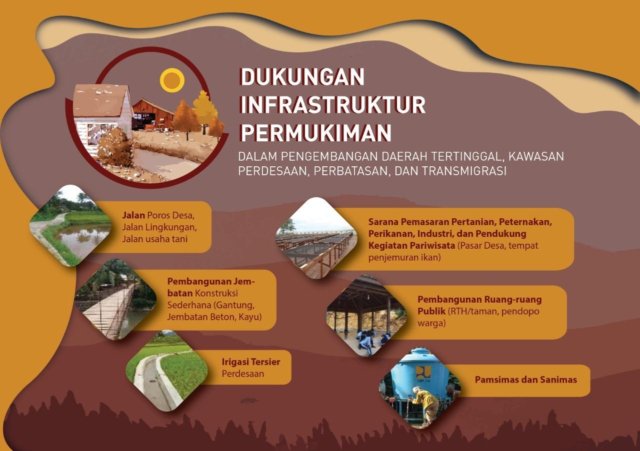 Dukungan infrastruktur PUPR di Daerah Tertinggal, Kawasan Perbatasan, Perdesaan, dan Transmigrasi dilaksanakan sesuai dengan prinsip hilirisasi komoditas unggulan dan sesuai batas kewenangan penanganan infrastruktur Kementerian PUPR.