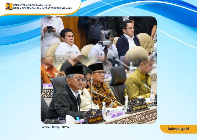 Kepala Badan Pengembangan Infrastruktur Wilayah (BPIW), Bob Arthur Lombogia mendampingi Menteri Pekerjaan Umum (PU), Dody Hanggodo dalam Rapat Kerja (Raker) Komisi V DPR RI.