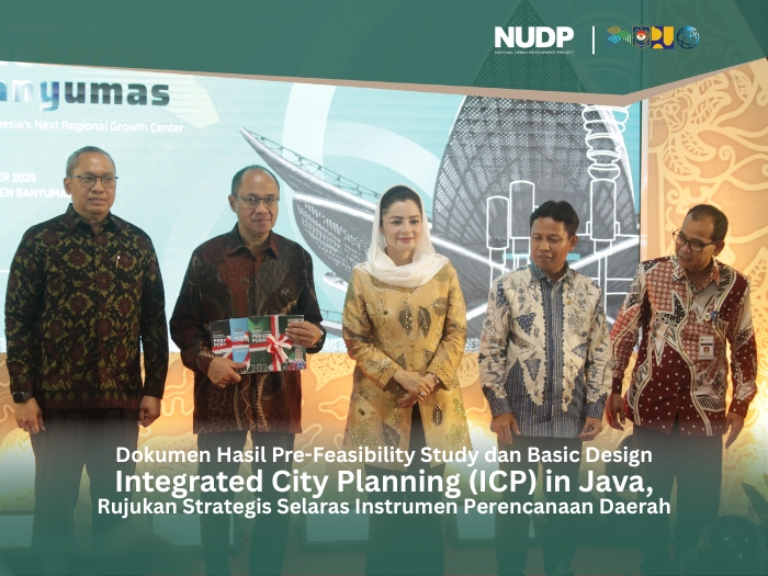 Ketua Sekretariat Central Project Management Unit (CPMU) National Urban Development Project (NUDP) Airlangga Mardjono secara resmi menyerahkan dokumen Hasil Pra-Studi Kelayakan (Pre-Feasibility Study/FS) dan Desain Dasar (Basic Design) Integrated City Planning (ICP) in Java kepada Bupati Banyumas Sadewo Tri Lastiono. Kegiatan yang didahului dengan Forum Group Discussion (FGD) ini dilaksanakan di Pendopo Si Panji di Purwokerto, ibu kota Kabupaten Banyumas, Jawa Tengah, pada 19 Desember 2025.